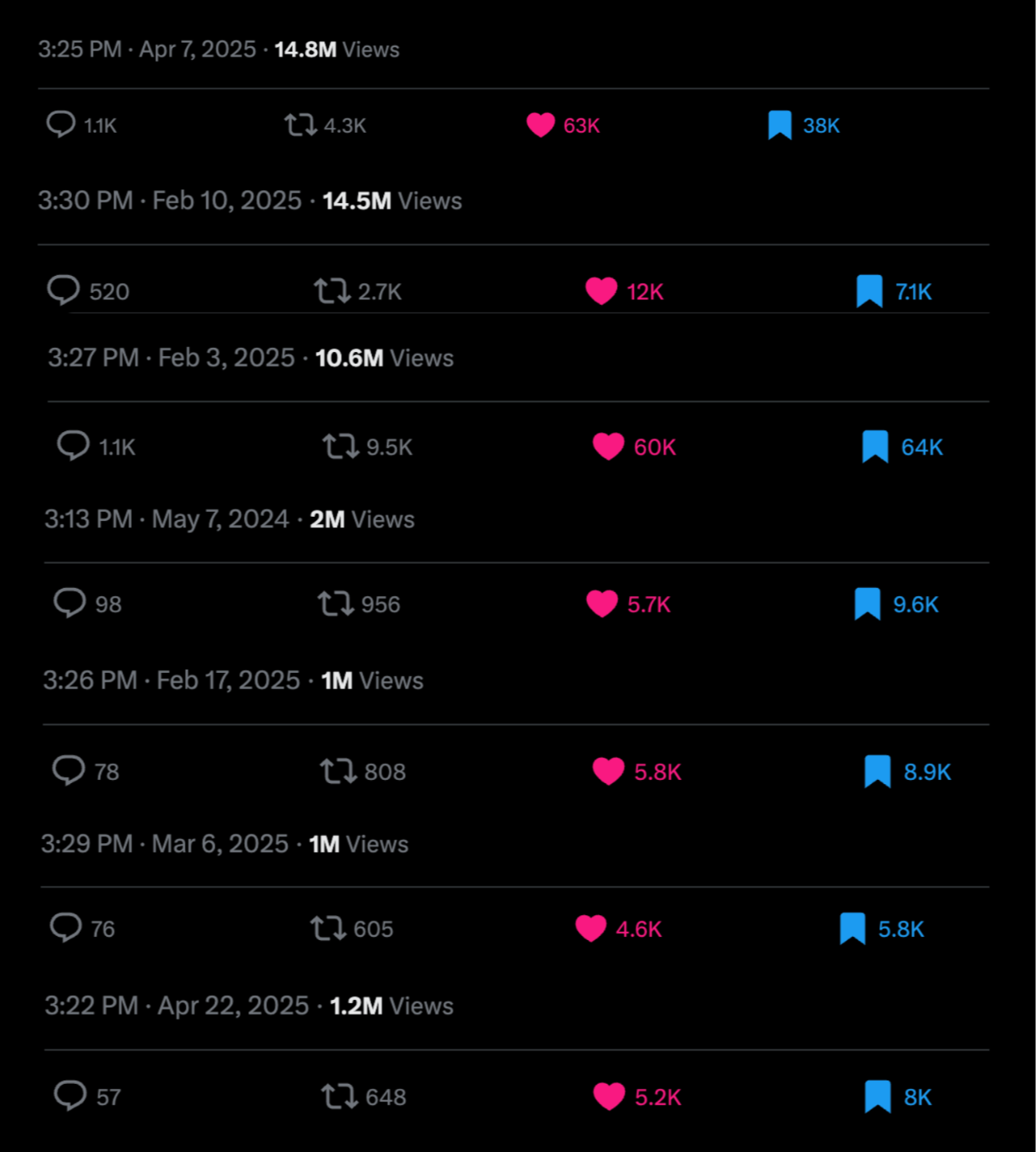 - 99 posts with +100K views